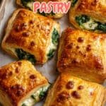 Delicious and addictive spinach stuffed pastry featuring a creamy ricotta and Parmesan filling wrapped in flaky puff pastry. Perfect as a savory snack or appetizer, these golden-brown pastries are easy to prepare and bake to perfection.