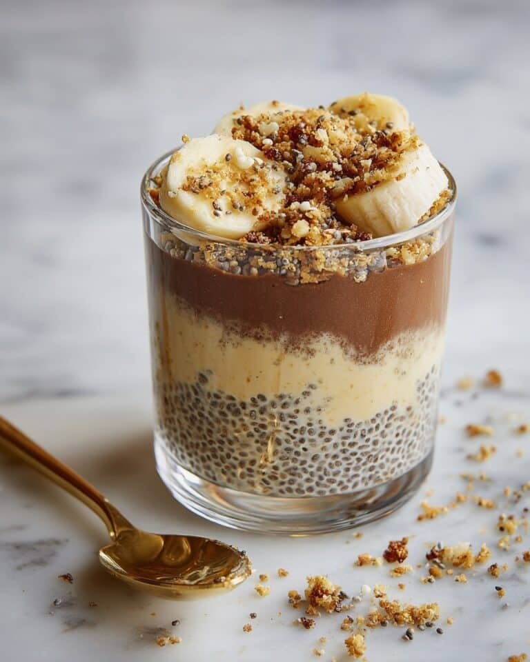 A nourishing and delicious Apple Crumble Chia Pudding featuring spiced chia pudding layered with stewed cinnamon apples and a crunchy oat and nut crumble, perfect for a wholesome breakfast or snack.