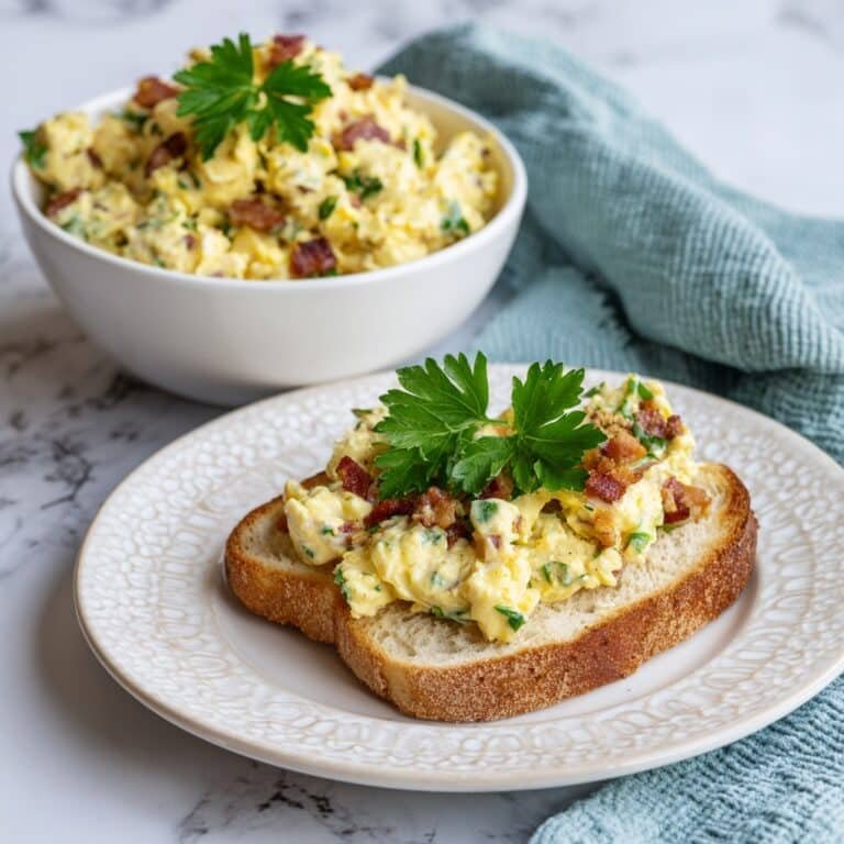 A simple and delicious Bacon & Egg Salad combining hard-boiled eggs, crispy bacon, and creamy mayonnaise with mustard, perfect for a hearty breakfast or snack.