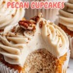 - Frost and garnish: Once cupcakes are completely cool, frost each with the cream cheese frosting and sprinkle with chopped pecans for garnish.
