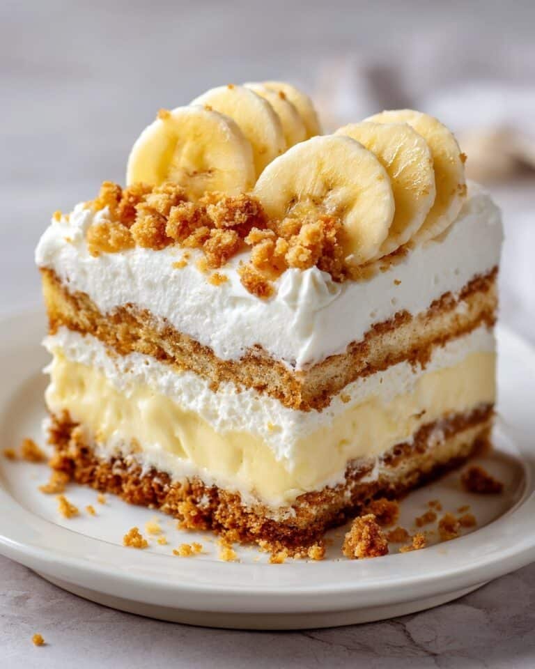 A decadent Banana Pudding Cookie Butter Cheesecake Cake that combines creamy cheesecake with the rich flavor of cookie butter and ripe bananas, layered with crunchy vanilla wafers for a delightful texture contrast. Perfect for dessert lovers seeking a blissful indulgence.
