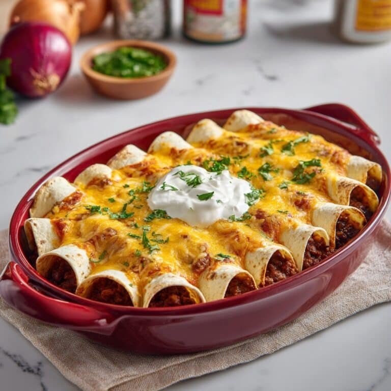 A delicious and hearty recipe for beef enchiladas featuring seasoned ground beef, flavorful spices, and melted cheddar cheese wrapped in corn tortillas and baked to perfection with enchilada sauce.