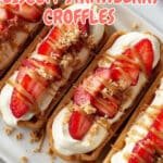 Biscoff Strawberry Croffles combine flaky croissant dough cooked in a waffle iron with luscious Biscoff whipped cream, fresh strawberries, and crunchy Biscoff cookie crumbles for a delectable dessert or brunch treat.