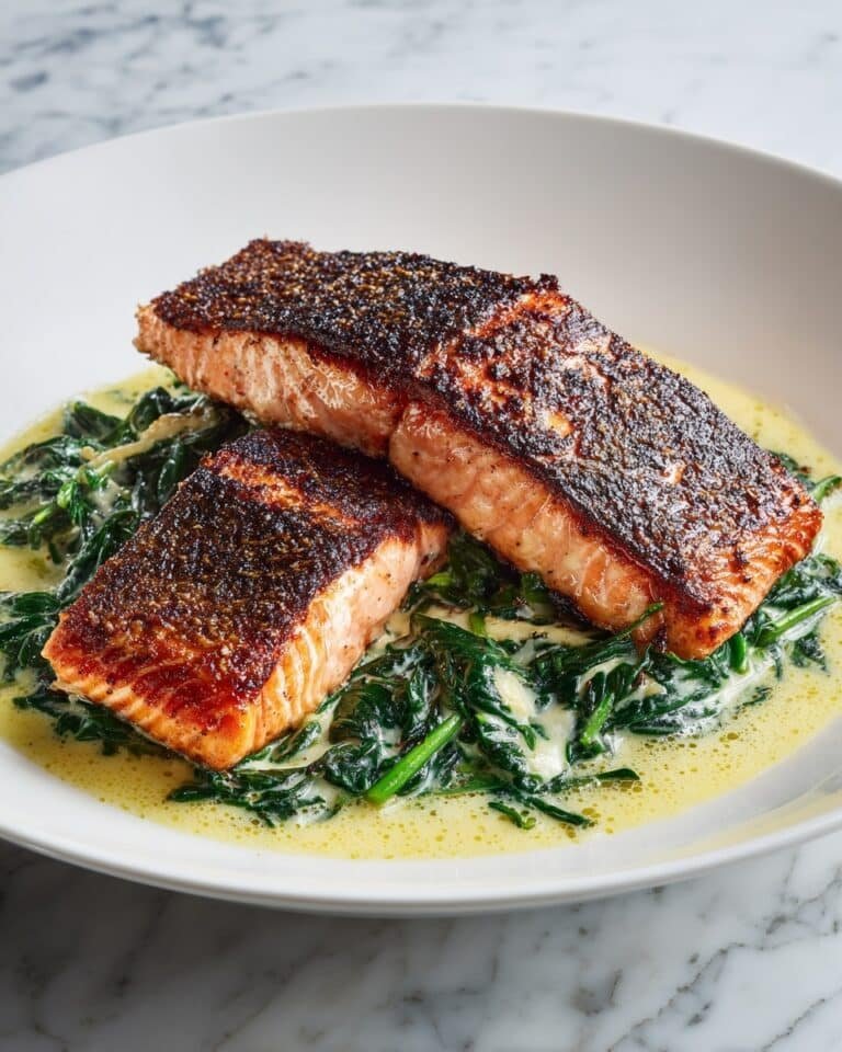 This Blackened Salmon Stuffed with Spinach & Parmesan is a flavorful and healthy main course featuring moist salmon fillets filled with a creamy mixture of sautéed spinach, cream cheese, and Parmesan. Perfectly seasoned with blackening spices and baked to flaky perfection, this dish offers a delicious balance of savory and fresh flavors ideal for a nutritious dinner.