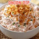 This Bloomin’ Onion Dip is a flavorful appetizer featuring a creamy, tangy dip combined with chopped cocktail onions and topped with crispy, spiced panko breadcrumbs. It’s perfect for parties or casual gatherings, offering a delicious twist on traditional onion dip with a crunchy breadcrumb topping.