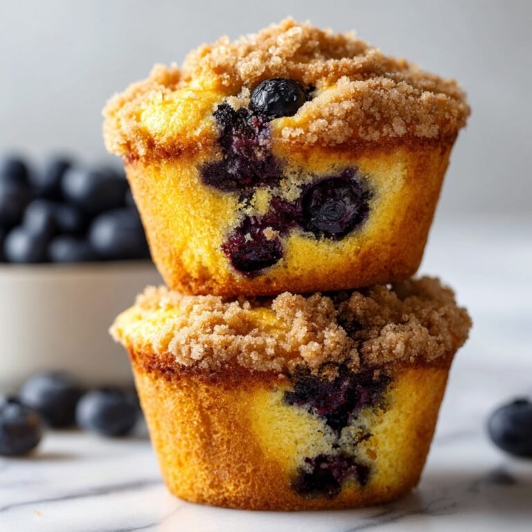 Delicious homemade blueberry muffins with a sweet cinnamon brown sugar topping. These moist and tender muffins are perfect for breakfast or a snack, featuring fresh blueberries folded into a creamy batter made with sour cream and vanilla.