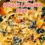 This cozy and comforting Butternut Squash Lasagna Soup with Kale is a creamy, dreamy fall favorite. It features a caramelized butternut squash base seasoned with garlic, brown sugar, and Italian spices, combined with tender kale, broken mafalda pasta, and topped with gooey mozzarella for a cheesy finish.