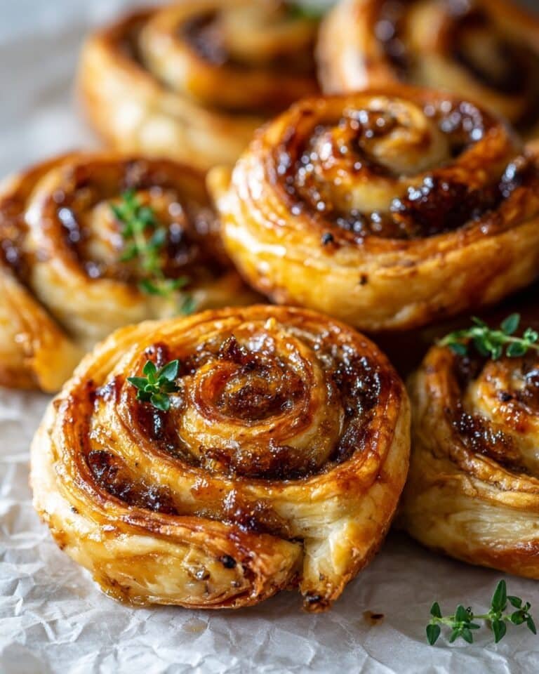 Delight in these savory Caramelized Onion & Thyme Pinwheels made with flaky puff pastry filled with sweet, slow-cooked onions and fragrant fresh thyme. Perfect as an appetizer or snack, these golden, buttery pinwheels bring rich, aromatic flavors with minimal effort.
