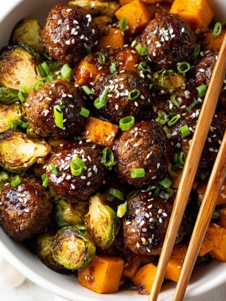 Korean BBQ Meatballs with Roasted Vegetables Recipe