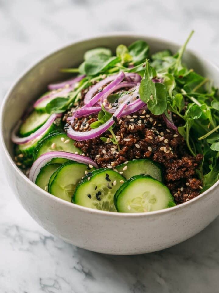 Spicy Korean Ground Beef with Cucumber Salad Recipe
