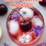 A refreshing and floral Cherry Blossom Mocktail combining tart cherry juice, zesty lemon juice, and fragrant lavender-infused simple syrup, topped with sparkling water and garnished with fresh cherries and edible flowers for a perfect non-alcoholic beverage.