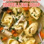 A hearty and flavorful Chicken Tortellini Soup featuring tender shredded chicken, aromatic vegetables, and cheesy tortellini simmered in a gently seasoned broth that's perfect for cozy meals.