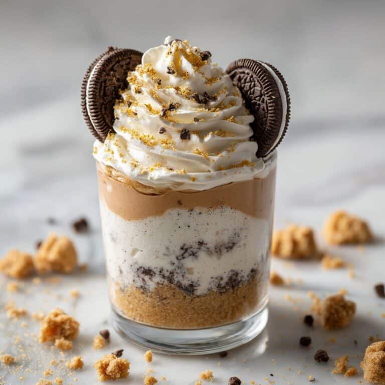 Assemble the Parfait: Using serving glasses or jars, start with a layer of chocolate mousse at the bottom. Next, add a layer of the whipped cream, then sprinkle a layer of the cookie crumb mixture on top. Repeat these layers until the glass is filled, finishing with a final layer of whipped cream on top.