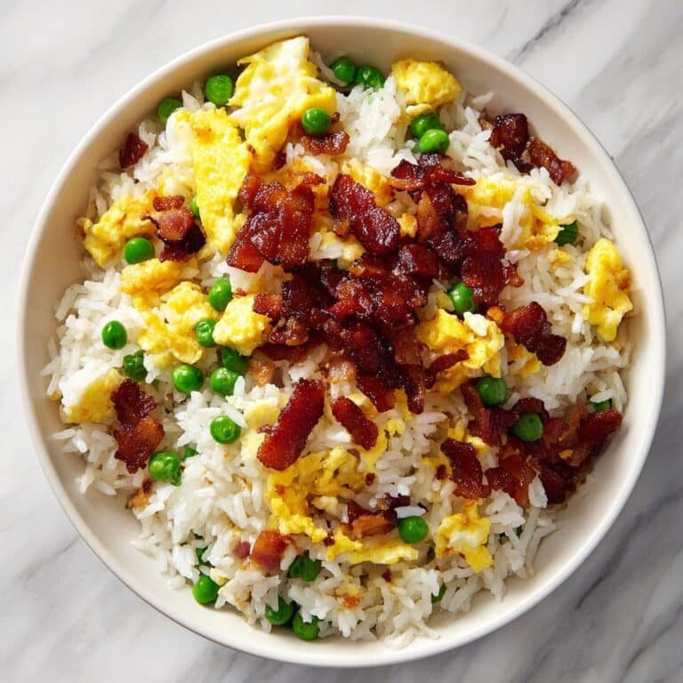 A quick and savory Breakfast Fried Rice recipe featuring crispy bacon, scrambled eggs, and green onions, perfect for a hearty morning meal or anytime comfort food.