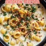 A flavorful Crockpot Chicken Piccata recipe featuring tender chicken breasts cooked slowly in a tangy lemon, caper, and garlic sauce, perfect for a comforting meal served over pasta or rice.