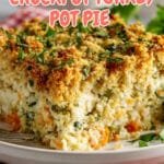 A comforting Crockpot Turkey Pot Pie recipe that uses leftover turkey, mixed vegetables, and creamy gravy, slow-cooked to perfection with a crispy stuffing topping.