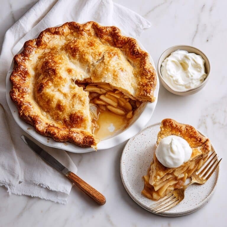 This Double-Crust Honeycrisp Apple Pie features a flaky, buttery crust filled with sweet and spiced Honeycrisp apples. Perfectly balanced with cinnamon, nutmeg, and a hint of ginger, this classic dessert is finished with a golden egg-wash crust and a sprinkle of sugar for a delightful crunch.