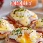 Classic Eggs Benedict features toasted English muffins topped with Canadian bacon, perfectly poached eggs, and rich, creamy homemade hollandaise sauce, garnished with fresh chives. This elegant brunch or dinner dish balances savory and tangy flavors with silky textures.