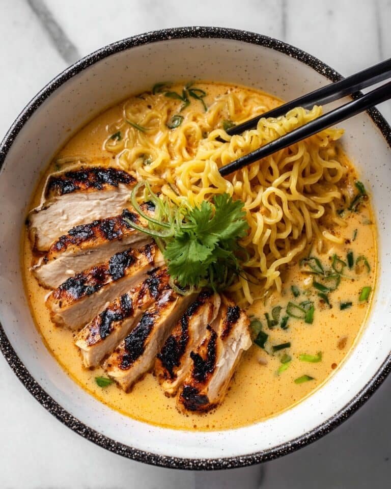 Fiery Chicken Ramen is a comforting noodle bowl featuring spicy marinated chicken strips, creamy garlic sauce, and classic ramen noodles. Topped with fresh green onions, shredded carrots, a soft-boiled egg, sesame seeds, and nori strips, this dish offers a perfect balance of heat, creaminess, and savory flavors ideal for a hearty meal.