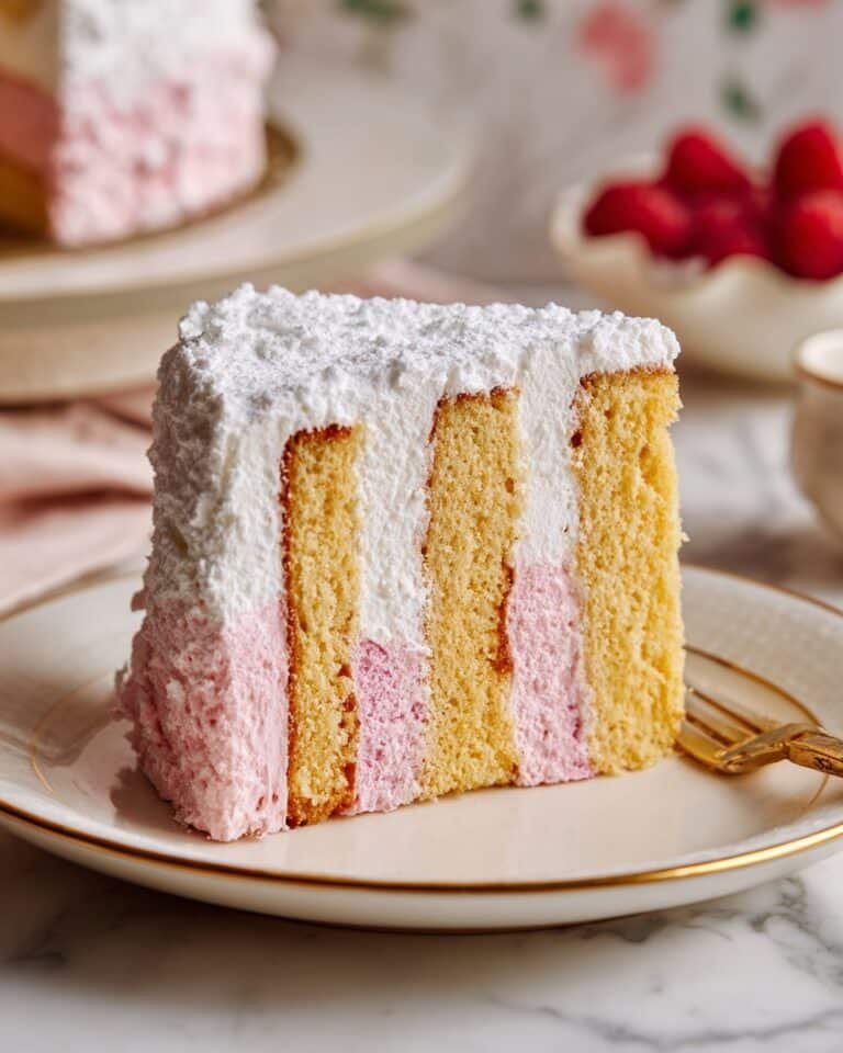 This Raspberry Angel Food Cake is a light and refreshing dessert made with a classic angel food cake mix enhanced by fresh raspberries and a hint of lemon and vanilla. The airy texture of the cake combined with the burst of fruity flavor makes it a perfect treat for any occasion.