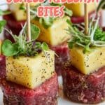 For a casual party, arrange these bites on a wooden board with rustic toothpicks. For something a little more polished, try placing them on a bright white serving platter and add small bowls of dipping sauces or a sprinkle of toasted sesame seeds for texture.