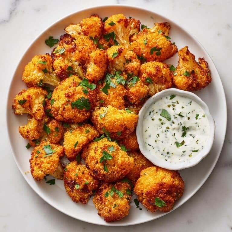 A delicious and gluten-free take on classic buffalo wings using crispy cauliflower florets coated in spicy buffalo sauce and almond flour, cooked to perfection in the air fryer.