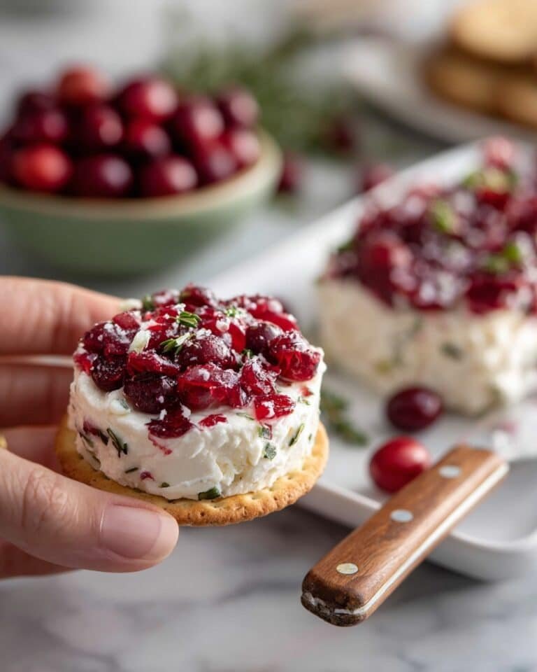 A vibrant and tangy Cranberry Jalapeno Cream Cheese Dip combining fresh cranberries, spicy jalapeno, and creamy whipped cream cheese, perfect for holiday gatherings or any party snack.