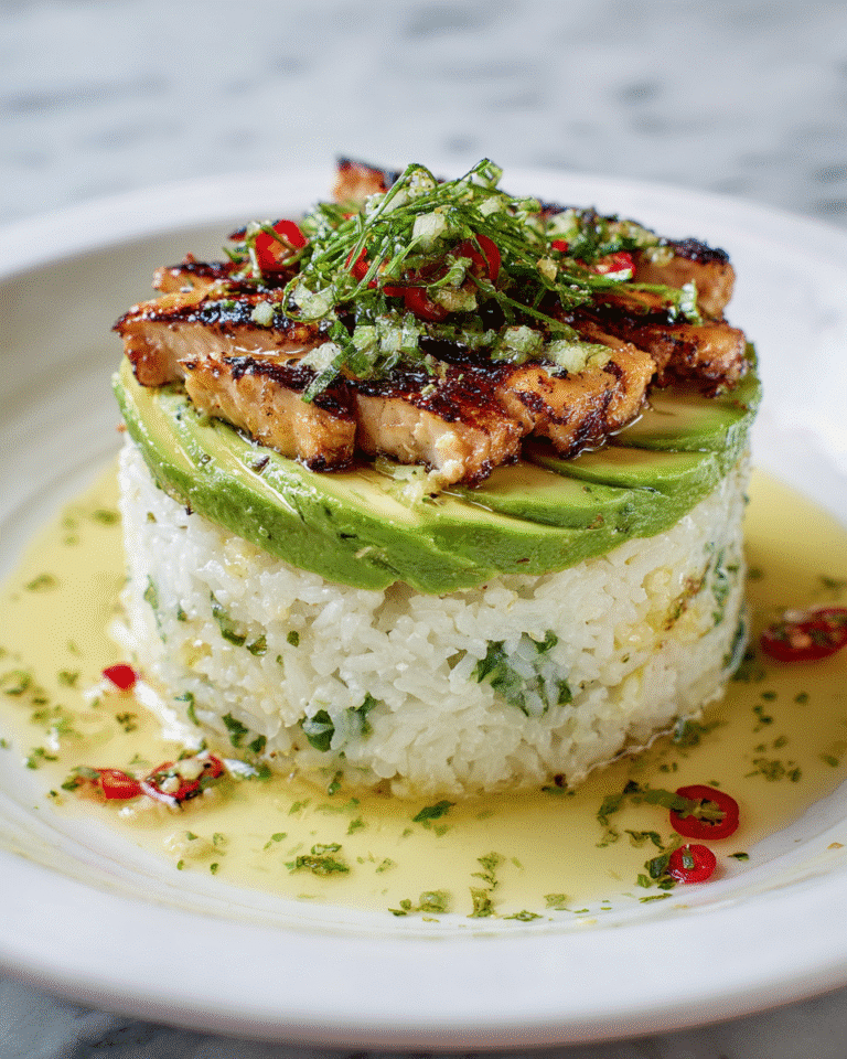 This Honey Lime Chicken Stack is a vibrant and flavorful dish featuring marinated chicken sautéed with a tangy honey lime glaze, layered atop fragrant cilantro lime rice and creamy avocado. Perfect for a quick and satisfying meal that combines zesty, sweet, and savory flavors in a beautiful stacked presentation.