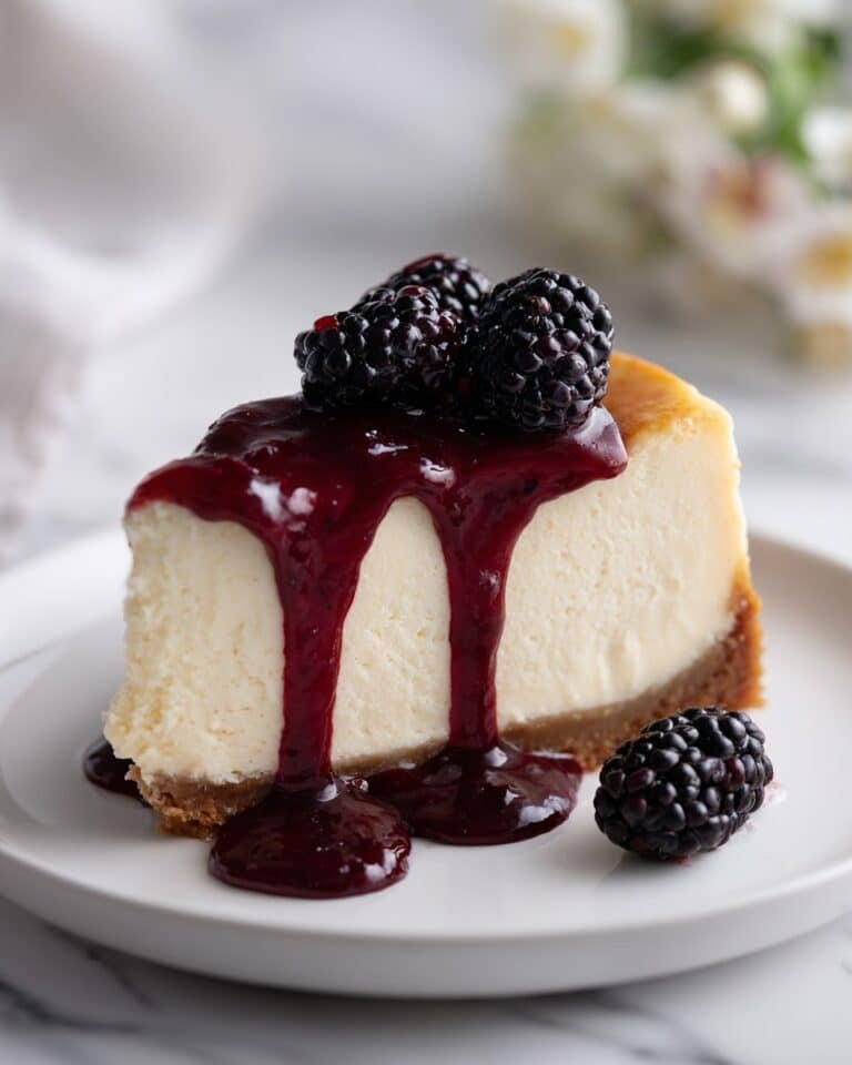 Serve: Garnish the cheesecake with fresh blackberries and drizzle with the blackberry sauce.