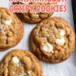 These cookies freeze beautifully! Freeze baked cookies in a single layer on a baking sheet first, then transfer to a freezer-safe container or bag for up to 2 months. Thaw at room temperature before enjoying—avoid microwaving frozen marshmallows directly as they can get chewy or tough.