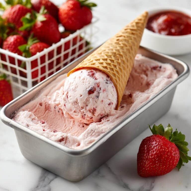 Freeze: Pour the mixture into a loaf pan or freezer-safe container. Swirl in extra strawberry jam if using. Cover and freeze for at least 6 hours or overnight until firm.