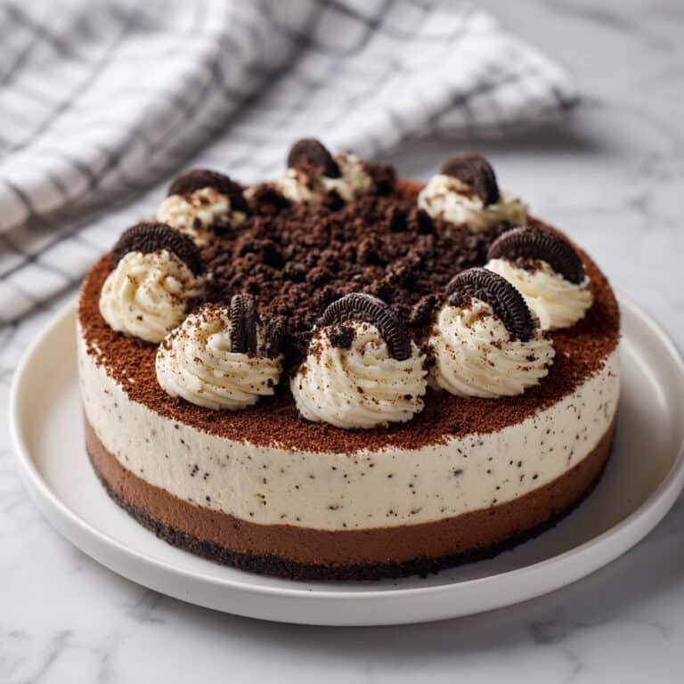 A rich and creamy Oreo cheesecake featuring a buttery Oreo crust and a luscious cream cheese filling studded with crushed Oreos. Perfectly chilled for a refreshing dessert treat.