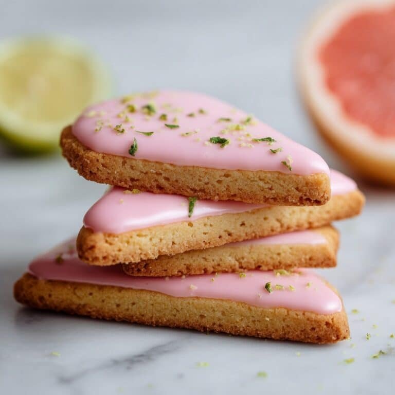 Delight in these Pink Grapefruit and Thyme Vegan Shortbread cookies, combining the zesty freshness of grapefruit with fragrant thyme. Baked to a perfect golden crisp and topped with a tangy grapefruit icing, these elegant and flavorful vegan shortbread treats make a lovely dessert or snack for any occasion.