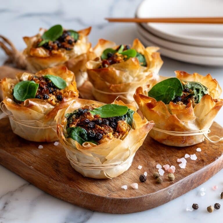 Delightful Pumpkin Feta Phyllo Cups featuring tender sautéed pumpkin, fresh baby spinach, and crumbled feta wrapped in crispy, buttery phyllo dough. Perfect as a savory appetizer or elegant snack with optional honey sweetness and nutty seed garnish.