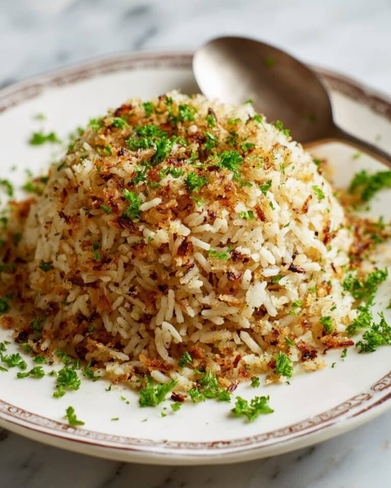 This Rich and Savory Golden Onion Butter Rice is a flavorful and comforting side dish featuring perfectly toasted rice cooked with golden sautéed onions, garlic, and butter. Enhanced with chicken broth and garnished with fresh parsley, it's an easy yet elegant accompaniment to any meal.