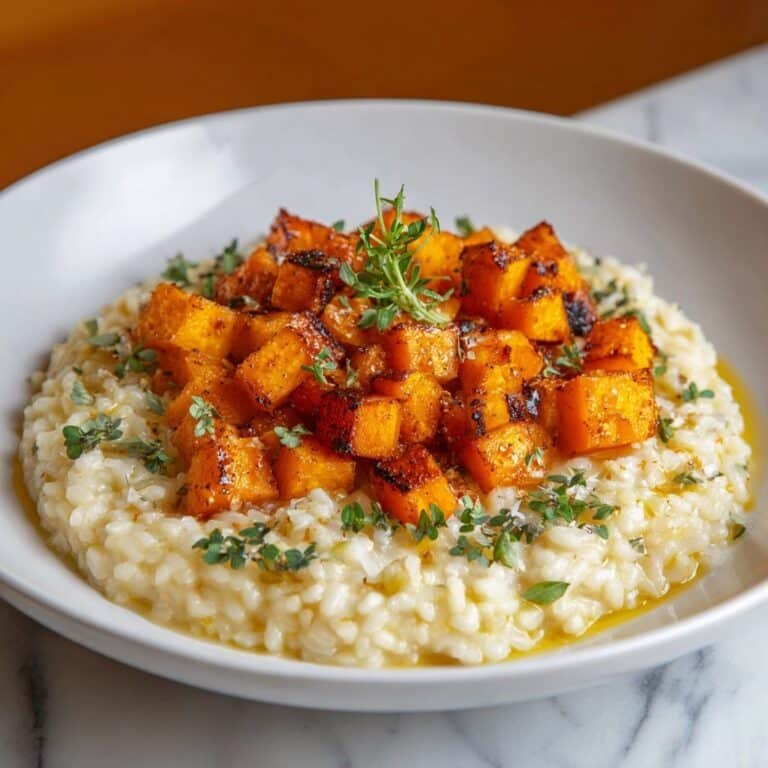 A creamy and comforting Roasted Butternut Squash Risotto featuring tender roasted squash, Arborio rice, and a rich blend of Parmesan cheese and fresh sage. This elegant dish is perfect for a cozy dinner or special occasion.