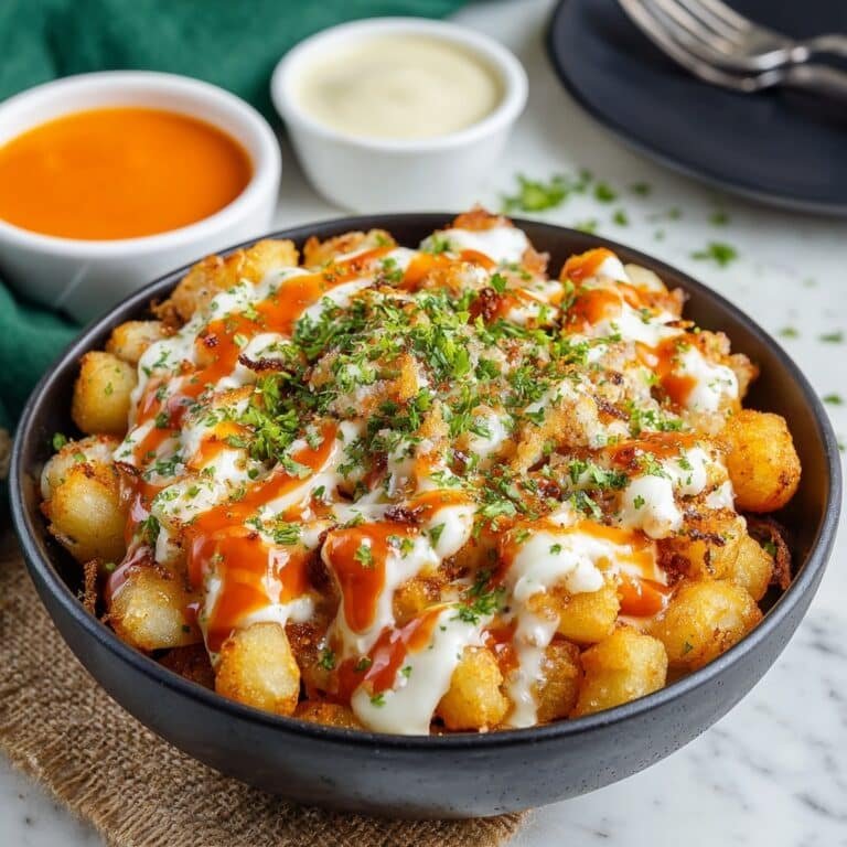 Spanish Patatas Bravas is a classic tapas dish featuring crispy fried potatoes topped with a spicy and smoky tomato-based brava sauce, often served with a creamy garlic aioli and fresh parsley garnish. This easy-to-make dish combines bold flavors and textures for a perfect appetizer or snack.