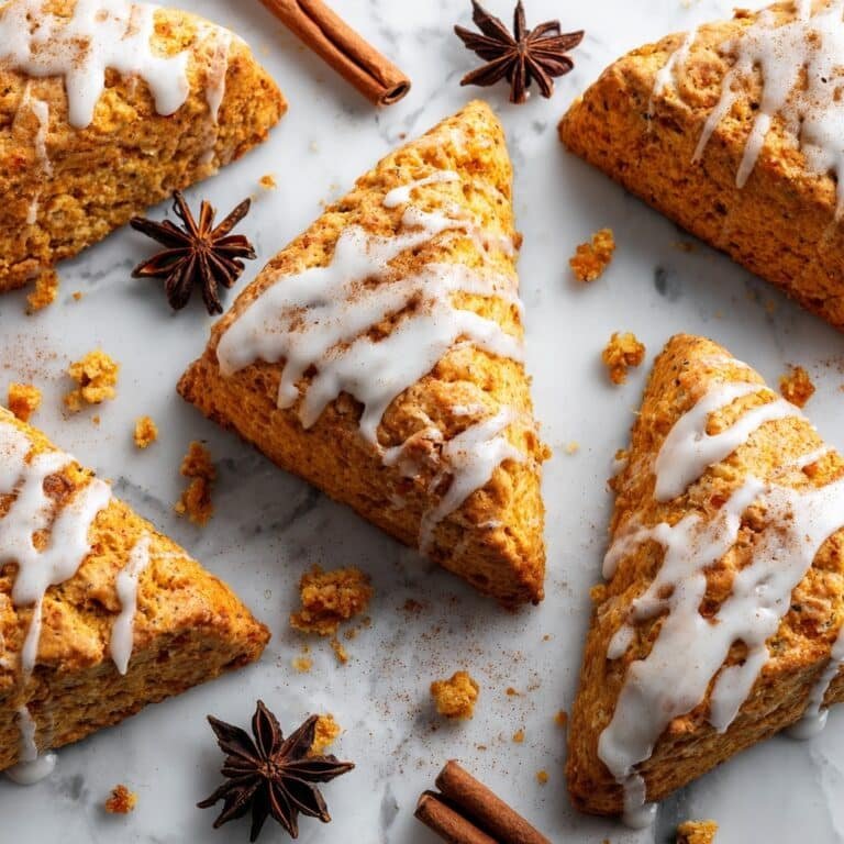 These Spiced Pumpkin Scones with Vanilla Glaze are a delightful autumn treat featuring tender, buttery scones infused with pumpkin and warm spices, finished with a sweet vanilla glaze for a perfect balance of flavors.