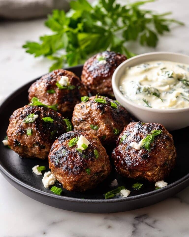 Step 7 — Assemble and Serve Your Spicy Greek Lamb Meatballs with Creamy Green Herb Dip Recipe