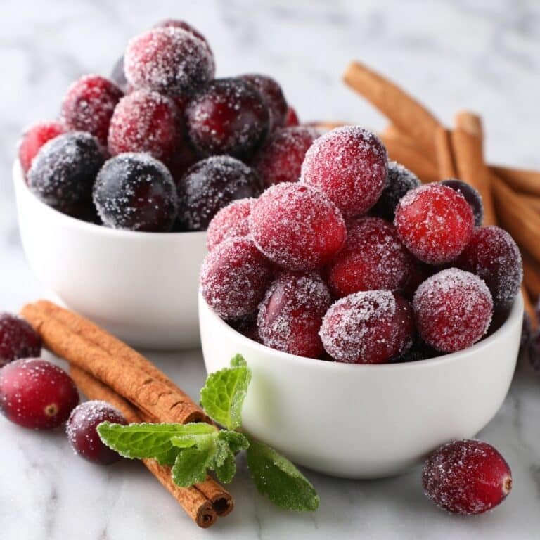 Sugared cranberries are a festive, sweet, and tangy treat perfect for holiday decorating or snacking. Fresh cranberries are coated in a simple sugar syrup, then rolled in granulated sugar to create a sparkling, crunchy exterior that contrasts their tart interior. This no-bake recipe is simple and quick, adding bright color and crunchy sweetness to any occasion.