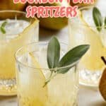 A refreshing and festive Thanksgiving bourbon pear spritzer that combines the warming flavors of bourbon, pear, ginger, and sage, perfect for holiday gatherings or a cozy autumn evening.